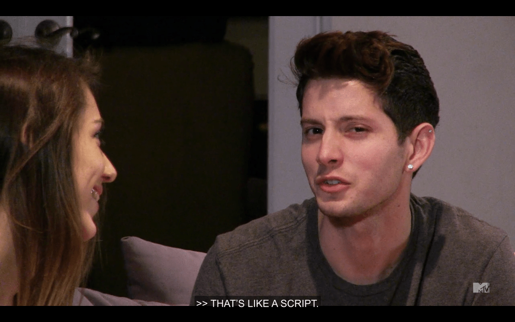 Img Desc: guy from Catfish looking at the camera and saying “That’s like a script”.
